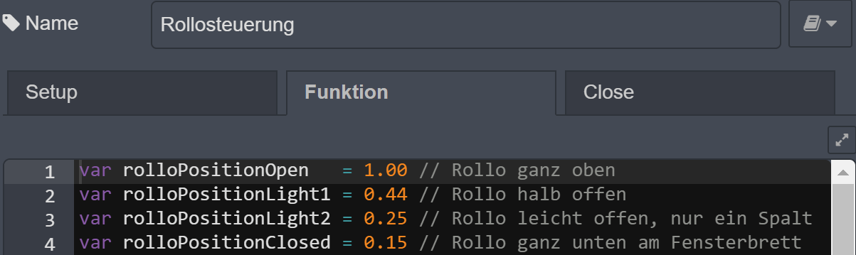 Die Positionen stellt man in den ersten vier Zeilen der Rollosteuerung-Funktion ein.